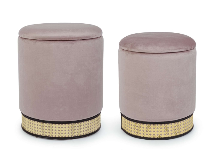 Bizzotto - Pouf Milena 2er-Set mit Samt-Optik Rosa