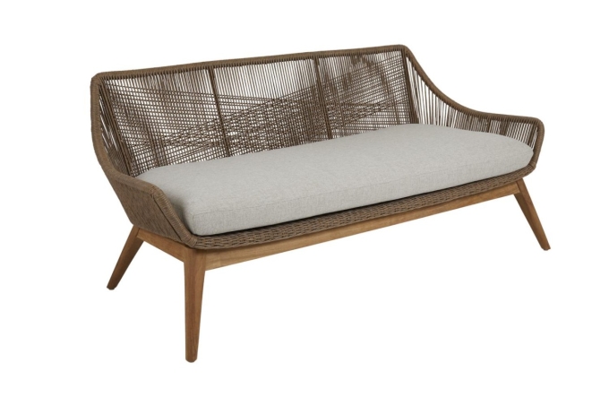 Das Gartensofa Hassel ist ein klassisch schönes Möbelstück für den Außenbereich. Das Fußgestell besteht aus Teakholz in Naturfarbe und verleiht dem Stuhl eine robuste und natürliche Ausstrahlung. Der Bezug aus Kunststoff-Rattan in Braun sorgt für ein modernes und zeitgemäßes Design und ist gleichzeitig sehr pflegeleicht und langlebig. Das Sitzkissen ist aus Olefin-Stoff gefertigt und bietet einen hohen Sitzkomfort.Olefin ist ein strapazierfähiges Material das gegenüber Witterungseinflüssen und UV-Strahlen beständig ist und ist somit optimal für den Einsatz im Freien geeignet. Das Kissen kann bei Bedarf einfach abgenommen und gewaschen werden. Der Gartenstuhl Hassel ist eine attraktive und praktische Wahl für den Außenbereich und eignet sich perfekt für gemütliche Stunden im Freien.