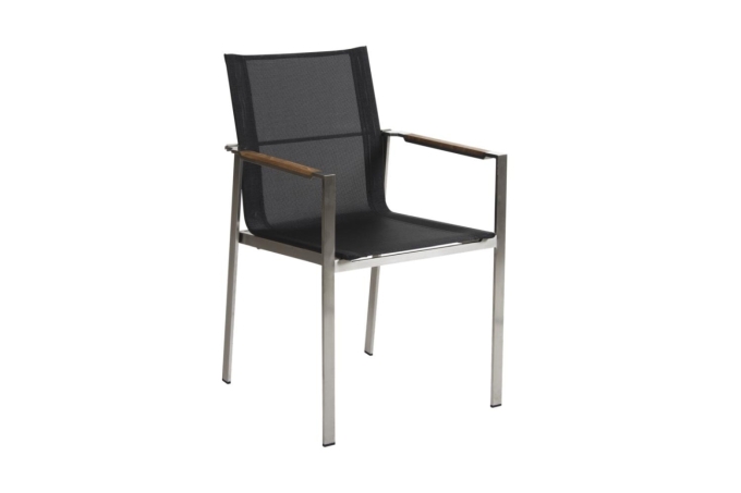 Der Gartenstuhl Gotland von Brafab ist ein stilvoller und bequemer Stuhl für den Außen-bereich. Das Gestell ist aus robustem Aluminium in silber und der Bezug ist in Grau gehalten. Die Armlehnen sind zusätzlich aus Teakholz-Details gefertigt was dem Stuhl eine natürliche und hochwertige Optik verleiht. Ein weiteres praktisches Merkmal des Garten-stuhls Gotland ist die Stapelfunktion die eine platzsparende Lagerung ermöglicht wenn der Stuhl nicht benötigt wird.