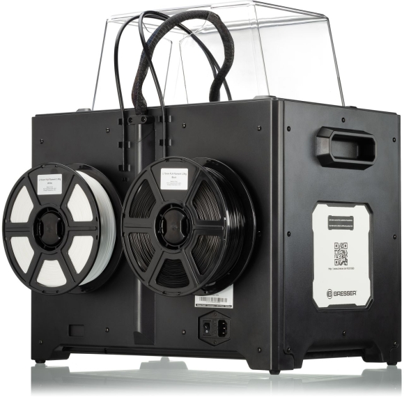 In drei Dimensionen doppelt kreativ werden Sie mit dem BRESSER T-REX WLAN-3D-Drucker. Denn durch die Twin-Extruder-Technologie hebt der FFF-3D-Drucker den 3-D-Druck auf eine ganz neue, farbenfrohe Ebene: Ob das Wappen des Lieblingsvereins als Schlüsselanhänger, bunte Spielfiguren für die Kleinen oder Ihre ganz eigene Frühjahrsdeko – freuen Sie sich auf hochwertige 3D-Drucke in zwei Farben. Und das besonders schnell, denn durch die zwei Extruder im 3D-Drucker entfällt der zeitfressende Filamentwechsel.Apropos Filament: Auch zwei verschiedene Materialien sind mit dem T-REX ganz leicht kombiniert – perfekt z. B. für Stützkonstruktionen aus Trägermaterial. Und durch die geschlossene Bauform mit Unibody-Abdeckung kann der 3D-Drucker ABS genauso sauber verarbeiten wie PLA, TPU und PVA (Trägermaterial).So flexibel der T-REX bei Farben und Materialien ist, so konsistent ist er bei der Qualität: Dafür umfasst die Zwillingsextrudertechnologie ein Turbokühlgebläse, das das Filament-Material beim Verlassen der Düse bereits herunterkühlt – für ein viel besseres Druckergebnis und noch mehr Freude an den dreidimensionalen Kreationen.Schneller Start in die wunderbare Welt des 3D-DrucksDer 3D-Drucker mit geschlossenem Bauraum kommt fast komplett vormontiert zu Ihnen nach Hause. Nur noch Spannung einstellen, Dual-Extruder-Set montieren und das Filament einlegen. Schon kann sie an den Start, Ihre eigene Kreativwerkstatt für passgenaue Ersatzteile, nützliche Gadgets und individuelle Präsente. Über den 8,9 cm großen, intuitiven LCD-Touchscreen haben Sie schnell alle notwendigen Einstellungen für den Druck vorgenommen. So ist der 3D-Drucker auch für Einsteiger gut geeignet, um sich an den ersten eigenen Konstruktionen zu versuchen.Robust und präzise – der T-REX 3D-Drucker mit GehäuseIn dem robusten Ganzmetall-Rahmenkörper steht Ihnen für die Umsetzung Ihrer kreativen Ideen im 3D-Drucker ein großer Bauraum von 227 x 148 x 150 mm zur Verfügung. Darin leistet der 3D-Printer mit Dual Extruder echte Präzisionsarbeit: Denn die äußerst stabile Gehäusestruktur ermöglicht hochpräzises Drucken. Und durch die Plattformträger aus Metall und 10-mm-Führungsstangen ist auch die Z-Achse stets in exakter Bewegung.Damit beim 3D-Drucken alles stets glatt geht, können Sie an den großen, robusten Levelingschrauben ganz einfach und komfortabel für ein absolut ebenes Druckbett sorgen. Und das lässt dann ihr Druckobjekt alles andere als kalt: Denn für die 6,3 mm dicke Bauplattform wird für die ausgezeichnete Wärmeverteilung eine Aluminiumlegierung verwendet, die auch in der Luft- und Raumfahrt zum Einsatz kommt.Der Software-Allrounder unter den 3D-DruckernDer 3D-Drucker für zuhause kann immer mit unserer eigenen REXprint Slicing-Software verwendet werden. Doch als Open-Source-Wunder lässt Ihnen der 3-D-Drucker auch bei der Datenverarbeitung stets die Wahl: Denn weil es sich beim T-REX um einen 3D-Printer mit offenem Quellcode handelt, können Sie aus einer endlosen Anzahl an Open-Source-Slicing-Programmen wie Cura, Simplify3D und viele weitere frei wählen. Mit einer CAD-Software und ein bisschen Übung sind Ihrer Kreativität dann keine Grenzen mehr gesetzt. Sie möchten lieber sofort out-of-the box starten? Dafür bietet das Internet jede Menge tolle Vorlagen für alle möglichen Interessen und Bedürfnisse. Sie können die Druckdaten dann ganz bequem über WLAN an den 3D-Drucker übertragen.Bringen Sie mit dem BRESSER T-REX 3D-Drucker mit 2 Extrudern mehr Farbe und mehr Materialauswahl in Ihren 3D-Druck.EIGENSCHAFTEN3D-Drucker mit 2 Extrudern und geschlossenem BauraumTwin-Extruder – auch Dual Extruder genannt – für Druck in zwei Farben/Materialien ohne FilamentwechselGroße Druckmaße: 227 x 148 x 150 mmIntuitiver LCD-Bildschirm mit TouchscreenGeschlossenes Gehäuse mit Unibody-AcrylabdeckungMetallrahmen für mehr StabilitätBeheizte Bauplattform, Temperaturregelung für verschiedene Filamente (empfehlenswert für PLA 50° C, für ABS 120° C)6,3 mm verformungsfreie, Aluminium-legierte BauplattformWLAN-Konnektivität für Cloud-DruckSPEZIFIKATIONENDruckverfahren: FFF (Fused Filament Fabrication)Baugröße: 227 × 148 × 150 mmDruckgenauigkeit:0,1 – 0,2 mmExtrudertemperatur: 240 °CMaximale Druckbetttemperatur: 120 °CSchichtdicke: 0,05 – 0,4 mmDüsendurchmesser 0,4 mmFilamentdurchmesser: 1,75 mmFilamentkompatibilität: ABS, PLA, TPU, PVA (Trägermaterial)Positionierungs-Präzision: XY:11 Mikrometer (0,0004 Zoll), Z: 2,5 Mikrometer (0,0001 Zoll)Abmessungen des Druckers: 530 x 370 x 560 mmNettogewicht: 14,8 kgBruttogewicht: 21,5 kgSoftware: REXprintDruckdateityp: STLDruckersprachen: Deutsch, Englisch, Französisch, Spanisch, Portugiesisch, PolnischLIEFERUMFANGT-REX DruckerUniversalnetzteil für den weltweiten SpannungsbedarfEU- und UK-NetzsteckerQuickstart-Anleitung, herunterladbare vollwertige Bedienungsanleitung auf der ProduktseiteUSB-KabelSD-KarteSpachtel1 kg PLA-Filament – weiß1 kg PLA-Filament – schwarz