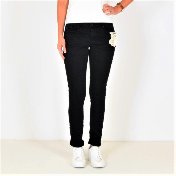 Buena Vista Damen Jeans Tummyless Die Damen Jeans in schwarz ist ein Hingucker und dank des Materialmix´ super im Tragekomfort und der Passform. Diese Jeans im edlen Schwarz ist ein Kombinationstalent, z. B. mit einer eleganten Bluse, mit einem stylischen Shirt oder einem sportlichen Top.  Sie lässt sich mit einem Reißverschluss und zwei Knöpfen schließen. Der Schnitt ist klassisch schmal. Die Jeans fällt sehr groß aus. Details:+ schwarz+ 2 Knöpfe und Reißverschluss + 5-Pocket-Style + schmale Form+ gerader Schnitt Material 68% Baumwolle, 21% Polyester, 11% Viskose, 2% Elasthan