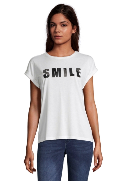 Merkmale + Hersteller: Cartoon + Modellname: Shirt  + Geschlecht: Damen + Farbe: cream + Material: Polyester 65%, Viskose 35% + Muster: einfarbig mit Frontdruck + Anlass: modisch + Kollektion: Ganzjahresartikel + Artikelnummer: 2034/7512-1894 Schnitt + Passform: gerade geschnitten + Ausschnitt: Rundhals + Länge: Normale länge (Größe 36, L =65 cm), Ärmellänge von Halsausschnitt (Größe 36 L = 21 cm), Brustlänge (Größe 36, L= 50cm)Wasch & Pflegetipps + Waschen: Maschinenwäsche bis 30° Grad + Bügeln: Bei mittlerer Temperatur (max. 150° Grad) + Chemische Reinigung: Alle allgemeinen üblichen Lösungsmittel erlaubt + Bleichen: Nicht erlaubt + Trocknen: Liegend