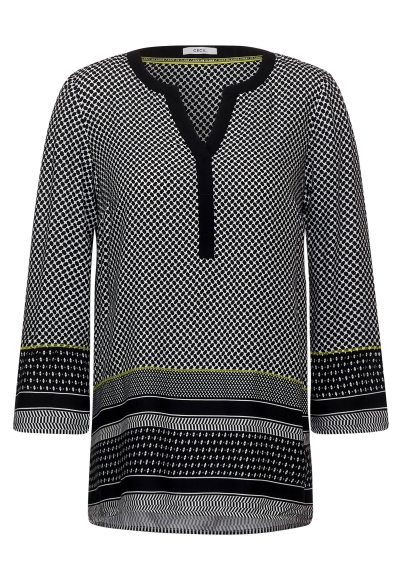 Luftig-leichtes Damen Longshirt im Ethno Style von CecilDetails+ Farbe: schwarz/weiß, Akzent in gelb+ V-Ausschnitt+ bequemer SchnittMaterial100% Viskose