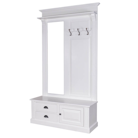 Feeling4Home - Garderobe Landhaus aus Kiefernholz 1 Spiegel 1 Tür 2 Schubladen 3 Hacken mit Eichenplatte