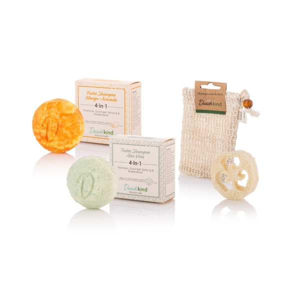 Duschkind festes Shampoo Naturkosmetik – Entdecke unsere festen Shampoos im Angebot mit zwei Shampoo-Sorten Aloe Vera und Mango in bester Bio-Qualität Vegan Handgemacht. Nachhaltig Duschkind festes Shampoo mit der 4in1 Formel - Shampoo, Duschgel, Pflege und Rasierschaum in einem Produkt! Ein tolles Angebot für Männer und Frauen!