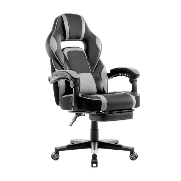 Rally Gaming Stuhl aus Leder mit Einziehbarer Fu?st¨¹tze - Grau