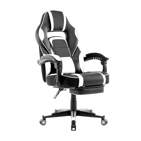 Rally Gaming Stuhl aus Leder mit Einziehbarer Fu?st¨¹tze - Wei?