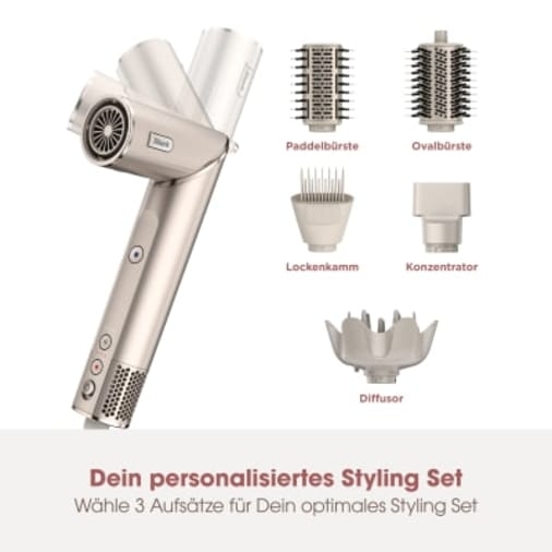 Personalisiertes Styling Set. Für ein Syling wie nie zuvor. Kreiere Dein eigenes Haartrockner und Styler Set mit dem Shark FlexStyle und genieße eine personalisierte Stylingroutine.Was ist Shark FlexStyle?Mit nur einer Drehung wechselst Du von einem leistungsstarken, schnellen Haartrockner zu einem vielseitigen Styler. Ob du Deine Haare glatt, voluminös oder schwungvoll tragen oder Deine natürlichen Locken definieren willst – mit diesem Gerät