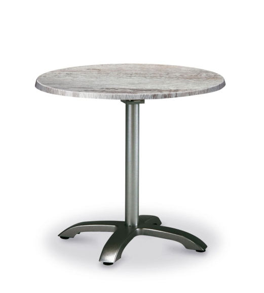 Der Klapptisch Maestro ist ein Blickfang und hebt sich durch das edle Design von üblichen Klapptischen markant ab. Ein optisches Highlight ist das elegante Aluminiumgestell mit seiner seidenmatten, anthrazitfarbenen Beschichtung. Dank der höhenverstellbaren Schrauben kann die optimale Standfestigkeit auf unebenem Boden eingestellt werden. Die extrem strapazierfähige Werzalit-Tischplatte im Montpellier-Dekor hat keine Kanten und Fugen. Die Platte ist unverwüstlich und selbst gegen heiße Töpfe und glühende Zigaretten unempfindlich. Der raffinierte Klappmechanismus mit Sicherheits-Arretierung läßt sich mit nur zwei Fingern bedienen. Die Tischplatte kann somit leicht abgeklappt werden. Der Tisch ist absolut wetterfest und kann die gesamte Gartensaison über im Freien bleiben. Maße: rund 90 cm Ø / Tischhöhe: 73 cm