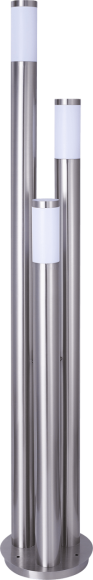 Diese elegante Sockellampe, der Serie Boston, zeichnet sich durch ihr außergewöhnliches Design und die tolle Verarbeitung aus. Die formschöne Stehlampe ist auf Grund ihrer Schutzart IP44 bestens für den Außenbereich geeignet. Dieses Modell besteht aus drei unterschiedlich hohen Lampen und hat eine Gesamtgröße von 1,7 Metern. Diese Außenlampe verfügt über drei E27 Fassungen und ermöglicht Ihnen deshalb ein Leuchtmittel Ihrer Wahl zu nutzen (max.60W). Auf Grund ihrer Stromersparnis und Langlebigkeit empfehlen wir LED-Lampen. Mit weiteren Sockel- und Wandlampen der gleichen Produktserie kann man das Bild komplettieren.