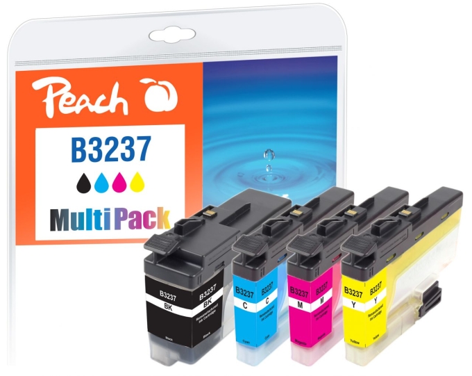 1.00 x Peach Tintenpatrone cyan kompatibel zu Brother LC-3237C1.00 x Peach Tintenpatrone gelb kompatibel zu Brother LC-3237Y1.00 x Peach Tintenpatrone schwarz kompatibel zu Brother LC-3237BK1.00 x Peach Tintenpatrone magenta kompatibel zu Brother LC-3237M4 Tintenpatronen MIT Chip - Einfach einsetzen und sparen!Peach ist eine führende Schweizer Marke für kompatible Tintenpatronen. Spitzentechnologie gewährleistet höchste Qualität und führt zu herrvoragenden Ergebnissen. Farb- und Lichtechtheit entsprechen höchsten Anforderungen und gewährleisten brillante Druckresultate. Um die Premium Qualität sicherzustellen, wird die Tinte im eigenen Entwicklungszentrum in der Schweiz entwickelt und anschliessend in unseren Fertigungsstandorten in die Tintenpatronen abgefüllt. Produktion und Fertigung entsprechen neusten Erkenntnissen aus Lehre und Forschung. Qualität, mit der asiatische Hersteller nicht gleichziehen können und dies zu immer noch sehr attraktiven Preisen. Eine echte Alternative zu teuren Original Produkten oder Billigsttinten.