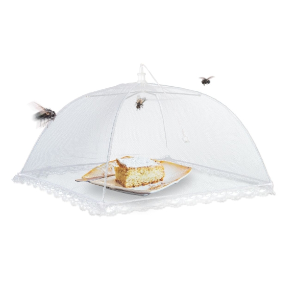 Oma wusste immer, was gut ist. Deshalb bringt Gardigo mit Omas Fliegenhaube einen echten Insektenschutz-Klassiker zurück. Die Abdeckhaube für Lebensmittel wird so ähnlich wie ein Regenschirm aufgespannt und über dem Essen platziert. Lästigen Fliegen und andere Schädlingen wird durch das feinmaschige Fliegengitter der Weg zur Nahrung versperrt. Omas Fliegenhaube lässt sich leicht zusammenfalten und platzsparend verstauen – oder überall hin mitnehmen, zum Beispiel zum Picknick, Buffets oder zum Grillen. Zu Hause finden sich jeden Tag Lebensmittel, die geschützt werden wollen, z. B. Obst, Kuchen oder Fleisch.Lebensmittel vor Insekten zu schützen ist eine Frage der Hygiene, schließlich verbreiten Fliegen gefährliche Keime und Krankheitserreger. Gerade beim Umgang mit Lebensmitteln ist es wichtig, auf Gift zu verzichten.Egal ob Stubenfliegen, Schmeißfliegen oder Fruchtfliegen: Schützen Sie Ihr Essen und genießen Sie wieder!Die Fliegenhaube ist eine ganz simple Lösung: Aufspannen – überstülpen – fertig!