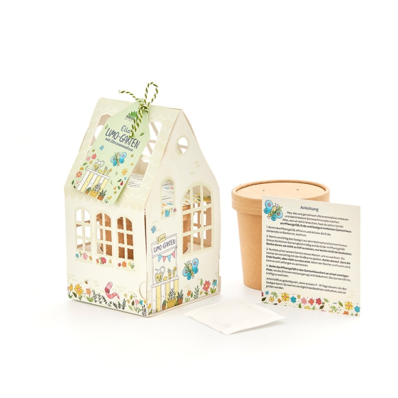 Gewächshaus Ellas Limogarten von "Die Stadtgärtner" | Anzuchtset mit Bio-Zitronenmelissensaatgut für die erste eigene Limo| Geschenkidee für Kinder inkl. Lim