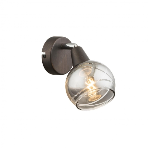 Globo ISLA LED Strahler Metall bronzefarben, Glas rauch klar, inkl. 10585 LED LM, Schalter, BxH:97x150, AL:190, inkl. 1xE14 LED 4W 230V, 196lm, 3000K