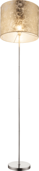 Diese Stehlampe definiert eine schlichte und einfache Bauweise. Die nickelmatten Bestandteile harmonieren einwandfrei mit dem Kunststoff und dem Textil in goldener Farbe. Über einen Schalter ist die 160 cm Große Lampe leicht zu bedienen und dank der E27 Fassung wird Ihnen auch die frei Leuchtmittelwahl (max. 60W) ermöglicht.