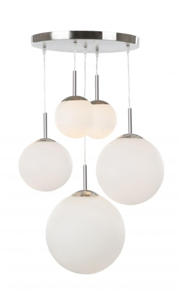 Globo BALLA Hängeleuchte nickel matt, Glas opal satiniert, 5 Kugeln, verschiedene Größen, BxH:450x800, exkl. 2xE27 ILLU 60W 230V, 3xE27 60W 230V