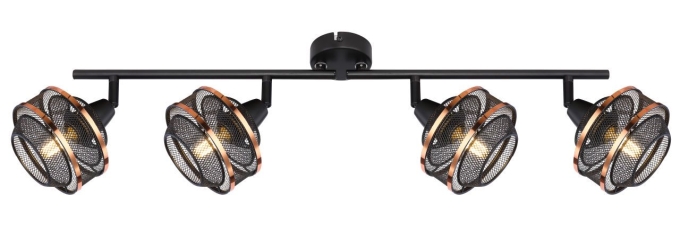 Strahler Metall schwarz, Metall schwarz, goldfarben, beweglich, LxBxH: 680x120x215mm, exkl. 4x E14 40W 230V