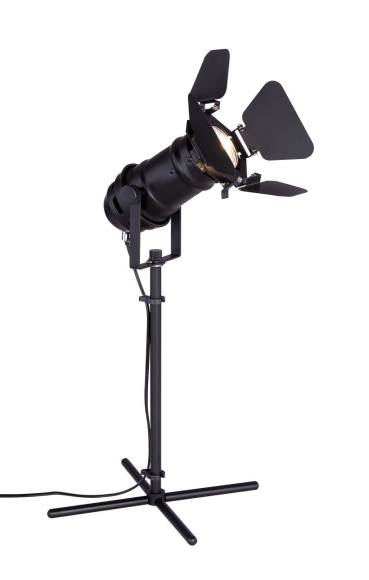 Tischleuchte Metall schwarz, Wippschalter am Kabel, beweglich, Filmsetstrahler, bewegliche Klappen, LxBxH: 275x240x440mm, Kabellänge 1500mm, exkl. 1x GU10 50W 230V