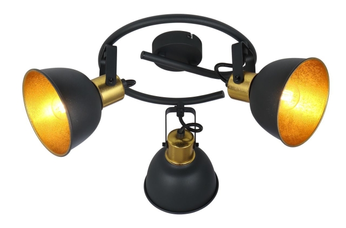 Strahler Metall schwarz, Metall schwarz, blattgold, ø: 250mm, H: 190mm, exkl. 3x E14 25W 230V