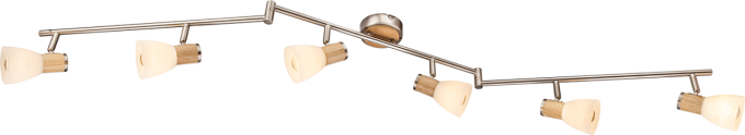 Der sechsflammige Strahler, der Deckenlampenserie Gylfi, ist mit sechs E14 Fassungen für je max. 40W ausgestattet und ermöglicht Ihnen, ein beliebiges Leuchtmittel zu nutzen. Aufgrund ihrer Stromersparnis und Langlebigkeit empfehlen wir LED-Lampen. Die Material- bzw. Farbkombination Holz/Nickel Matt macht diesen Deckenstrahler zum Blickfang in Ihrem Wohnbereich. Die sechs verstellbaren Spots, auf den zum Teil beweglichen Schienen, bringen Licht in die dunkelsten Ecken. Mit weiteren Modellen dieser Produktserie können Sie das Bild in Ihrem Wohnbereich komplettieren.