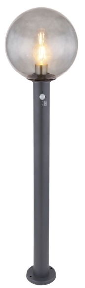 Außenleuchte Aluminium Druckguss anthrazit, Glas, Sensor inkl., IP44, ø: 250mm, H: 1000mm, exkl. 1x E27 LED 15W 230V
