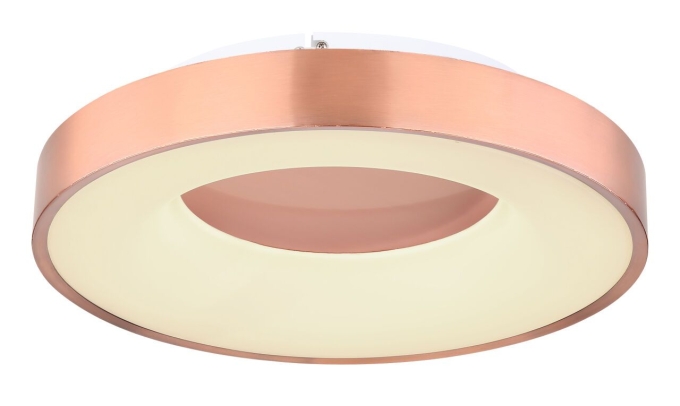 Diese runde Deckenlampe aus der Jolli-Serie (ø 40 cm) ist eine wunderbare Ergänzung für Ihre Innenräume. Sie besteht aus einer kupferfarbenen Metallplatte, um die gleichfarbiger Metallring fixiert ist. Die Fläche dazwischen ist mit opalenem Kunststoff versehen, welcher die inkludierten LED-Leuchtmittel, welche 1800 Lumen starkes Licht leisten, bedeckt. Mit der mitgelieferten Fernbedienung können Sie die Deckenleuchte nicht nur dimmen, sondern auch die Lichtfarbe in mehreren Stufen zwischen 2700 Kelvin (warmweiß) und 6000 Kelvin (kaltweiß) individuell einstellen und verfügen zudem über eine Nachtlichtfunktion. Durch weitere Modelle der gleichen Serie können Sie das Gesamtbild in Ihren vier Wänden komplettieren und für ein stilvolles Ambiente sorgen.