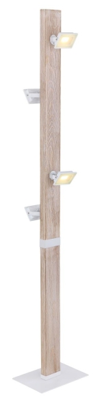 Stehleuchte Metall weiß, Holz weiß getüncht, Glas satiniert, klar, Wippschalter am Kabel, Strahler dreh- und schwenkbar, LxBxH: 250x180x1400mm, Kabellänge 2400mm, inkl. 4x LED 5W 230V, 500lm Source, 420lm Output, 3000K