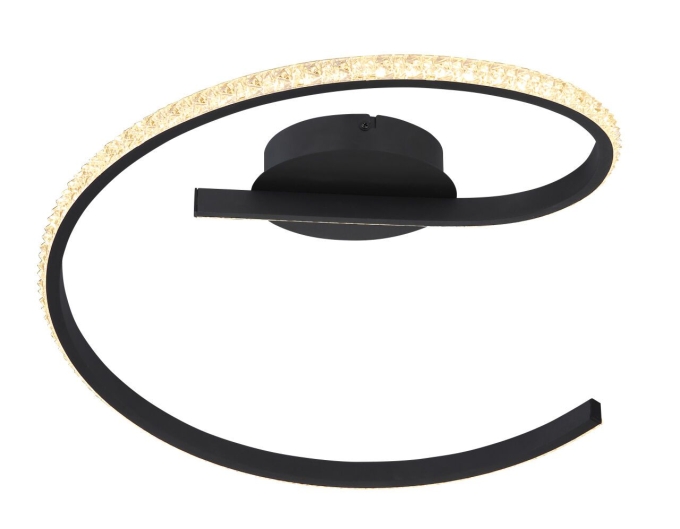 Deckenleuchte Metall schwarz matt, Acryl, Acrylkristalle klar, LxBxH: 440x470x130mm, inkl. LED 20W 230V, 2400lm Source, 1050lm Output, 3000K