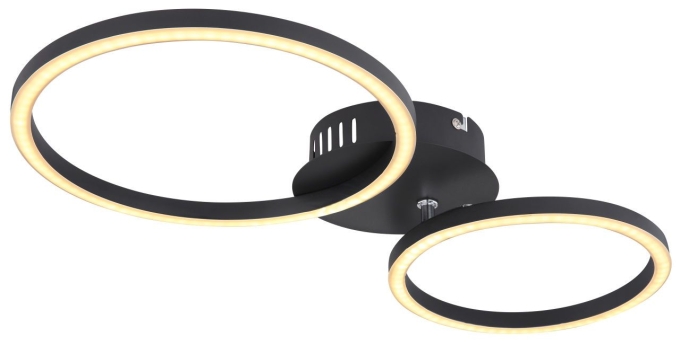 Die Deckenleuchte in schwarz matt ist ein wahrer Hingucker. Zwei unterschiedlich große Leuchtringe (Ø 25cm und Ø 20,5cm), hergestellt aus opalen Kunststoff, sorgen für ein 900 Lumen starkes aufregendes Licht mit einer angenehmen 3000K warmweißen Lichtfarbe.