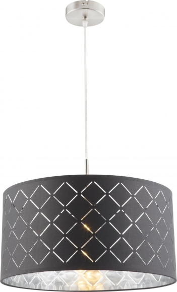 Globo KIDAL Hängeleuchte nickel matt, Textil grau silber metallic, Schirm mit Dekorstanzungen, D:400, H:1400, exkl. 1xE27 60W 230V