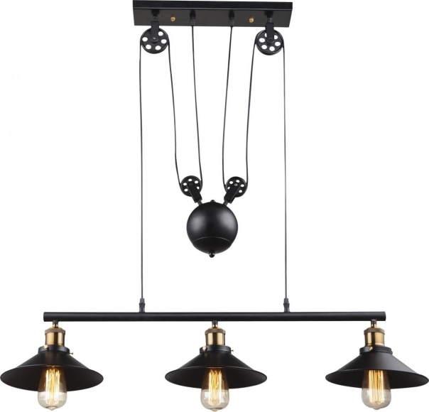 Globo LENIUS Hängeleuchte schwarz, altmessing, 4 Rollen, 90-180 cm, höhenverstellbar, LxBxH:920x220x1800, exkl. 3xE27 60W 230V