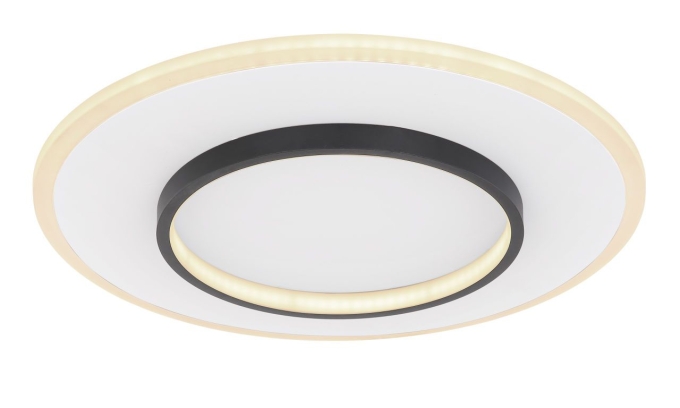 Diese kreisförmige Deckenlampe aus der Lima-Serie (ø 46,8 cm) überzeugt durch ihr schlichtes Design aus weißem Metall und opalenem Acryl. Der schwarze Ring in der Mitte der Deckenleuchte ist ein weiteres Merkmal, wodurch sie sich wunderbar kombinieren lässt. Die LED-Leuchtmittel spenden 2000 Lumen starkes Licht. Außerdem bietet Ihnen die inkludierte Fernbedienung nicht nur die Möglichkeit das Licht zu dimmen, sondern auch die Lichtfarbe in mehreren Schritten zwischen warmweiß (3000 Kelvin) und kaltweiß (6000 Kelvin) nach Ihren Vorlieben einzustellen. Mit dieser Deckenlampe können Sie in Ihren Innenräumen für ein stilvolles Ambiente sorgen.