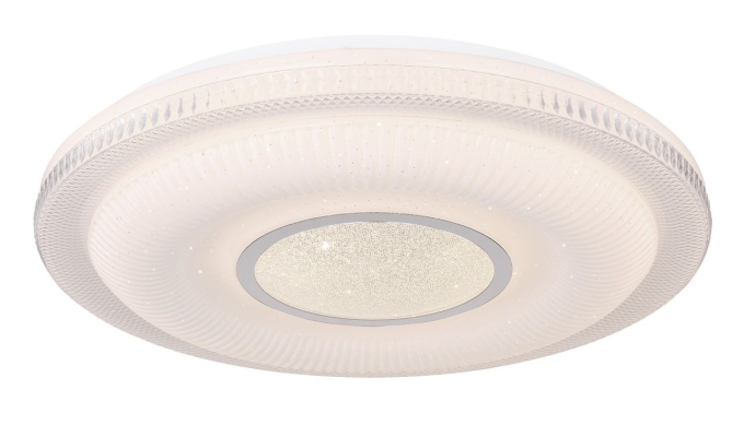 Diese exklusive Deckenleuchte MAGNIFIQUE (Ø 50cm) aus opalem Acryl mit sparkle Dekor punktet mit Leistung und Funktionalität. Durch die klaren Glaskristalle in der Mitte wird dem Raum ein besonderer Glanz verliehen. Mittels der inkludierten Fernbedienung kann die Lichtfarbe in mehreren Stufen zwischen angenehmen warmweißen 3000K und kaltweißem 6500K Licht reguliert und fixiert werden. Mit dem inkludierten 30 Watt LED Leuchtmittel leistet diese Deckenlampe maximal 2300 Lumen starkes Licht, kann nach Belieben gedimmt und der jeweiligen Situation angepasst werden. Zudem verfügt diese Lampe über eine Nachtlichtfunktion. Diese Smartlight Lampe lässt sich einfach mittels Tuya Smart App(Android TM/IOS) bedienen. Die Sprachsteuerung erfolgt unkompliziert mit Amazon Echo Tm oder Google Home.