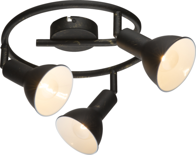 Dieser Deckenstrahler aus der Modellserie Namus verbindet Tradition und Design. Auf einem Am in e-Form sind drei schwarz matt gold patinierte bewegliche Metallstrahler mit einer weiß/goldenen Schirminnenfarbe angebracht. Diese sind mit je einer E14 Fassung ausgestattet und bieten Ihnen die Möglichkeit das Leuchtmittel und somit auch die Lichtstärke und Lichtfarbe selber zu bestimmen (max. 40W). Aufgrund ihrer Stromersparnis und Langlebigkeit empfehlen wir LED-Lampen. Mit weiteren Lampen der gleichen Modellreihe können Sie das Bild in Ihrem Wohnbereich komplettieren.