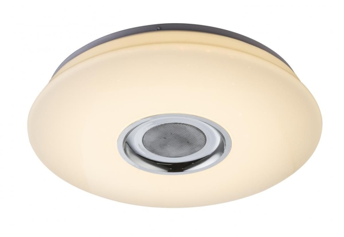 Globo NICOLE Deckenleuchte Kunststoff weiß, Kunststoff opal weiß, Sparkle, mit 5W Lautsprecher, CCT 3000-4500-6000K, dimmbar, Fernbedienung, Farbwechsler, Farben fixierbar, D:400, H:70, inkl. 1xLED 18W 230V, 1120lm, 1xRGB LED 6W 230V, bunt