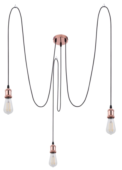 Hängeleuchte Metall kupferfarben, Kabel Textil schwarz, ø: 117mm, H: 2000mm, Kabellänge 2000mm, exkl. 3x E27 40W 230V