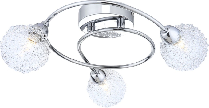 Eleganz und Stil bietet Ihnen diese schöne verchromte Deckenlampe der Produktserie Orina. Die Leuchtmittel aus klaren Glas sind von einem Aluminiumgeflecht umgeben, was zu einer stimmungsvollen Atmosphäre beiträgt. Die drei Leuchtspots sind an einer e-förmigen Schiene montiert, welche an einem runden Aufhänger befestigt ist. Mit 1380 Lumen Gesamtleuchtstärke und 2700K warmweißer Lichtfarbe wird eine optimale Beleuchtung erzielt. Ähnliche Artikel finden Sie in derselben Serie.