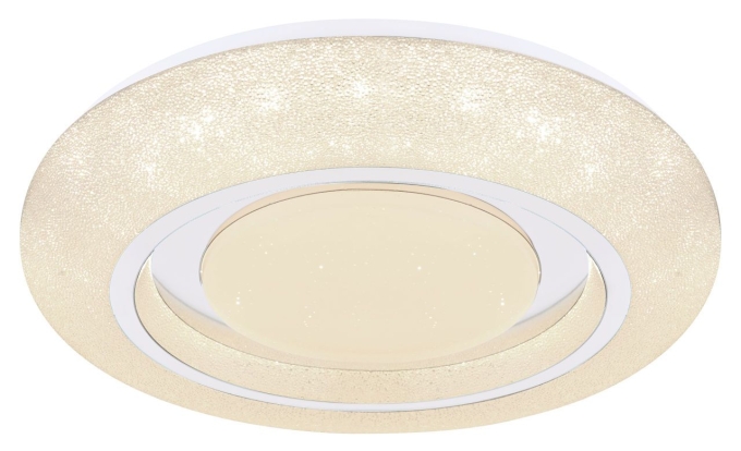 Deckenleuchte Metall weiß, Acryl opal sparkle, Chromring, mehrere Stufen über Wandschalter, Farben fixierbar, Memoryfunktion, ø: 380mm, H: 70mm, inkl. LED 24W 230V, 2800lm Source, 1800lm Output, CCT 3000/4000/6000K