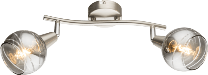 Dieser nickel matte Strahler bekommt durch sein Design einen rauchigen Touch. Zwei Strahler sind jeweils am Ende einer nickel matten Stange befestigt. Der Schirm dieser Strahler besteht aus klaren Rauchglas und durch feine Dekorlinien am Schirm bekommt er seinen Eleganz. Das 800 Lumen starke und 3000K warmweißs Licht der inkludierten LED Leuchtmittel rundet das Ganze ab. Die Lampe hat eine Länge von 28 cm und durch weitere Modelle dieser Serie können Sie das Bild in ihrem Wohnraum komplettieren.