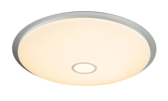 Diese runde Deckenlampe (Ø86cm) punktet mit Design und Funktionalität. Überwiegend aus weißem Acryl und klarem Kunststoff mit Sparcle-Dekor hergestellt, kann man mittels der inkludierten Fernbedienung die maximal 5200 Lumen starkes Licht dimmen. Mit der gleichen Fernbedienung kann man, je nach Bedarf und Situation, die Lichtfarbe in drei Stufen (Warmweiß 3000K, Neutralweiß 4000K, Kaltweiß 6000K) schalten und fixieren. Die Nachtlichtfunktion rundet das Leistungspaket dieser tollen Deckenleuchte ab.