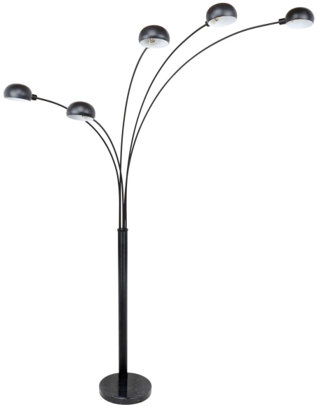 Diese Stehlampe aus der Seymour-Serie überzeugt durch ihr simples Design aus schwarzem Metall. Die 200 cm große Stehleuchte besteh aus einem runden Marmorsockel, auf dem ein Metallzylinder fixiert ist. Aus diesem ragen fünf gebogene Metallstäbe unterschiedlicher Länge, welche an den Enden mit runden Metallkuppeln mit jeweils fünf Linienstanzungen an der Rückseite versehen sind. Diese können mit E14-Leuchtmitteln Ihrer Wahl bestückt werden, wodurch Sie die Möglichkeit haben, Lichtfarbe und Helligkeit individuell zu bestimmen. Durch weitere Modelle der gleichen Serie können Sie das Gesamtbild in Ihren Innenräumen komplettieren und für ein stilvolles Ambiente sorgen.