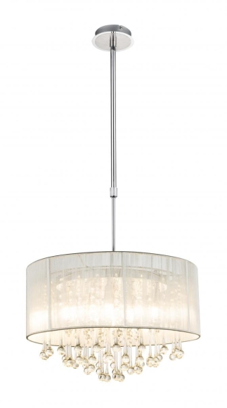 Globo SIERRA Hängeleuchte chrom, Seide silber metallic, Glaskristalle klar, höhenverstellbar 75-120 cm, inkl. 10676 LED, höhenverstellbar, D:500, H:1200, inkl. 12xG9 LED 3W 230V, 280lm, 3000K