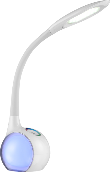 Das schlichte Design dieser weißen Acryl Tischlampe überzeugt sobald sie eingeschalten wird. Sie spendet über einen Strahler, welcher auf einem flexiblen Arm befestigt ist, ein 280 Lumen starkes und 5500K kaltweißes Licht. Doch das Besondere der Lampe ist der beleuchtete Sockel, dieser besitzt einen Farbwechsler, welcher die Farben auch fixieren kann und einen Touchdimmer. Sie hat außerdem eine Höhe von 53 cm.
