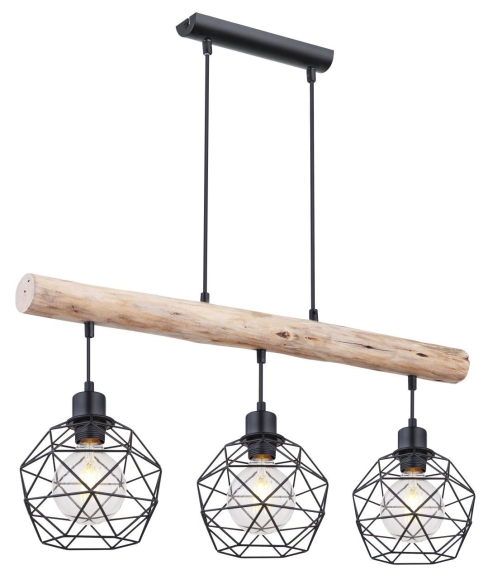 Mit dieser eindrucksvollen Hängeleuchte aus Holz und den trendigen Gitterschirmen aus Metall holen Sie sich garantiert einen modernen Blickfang nach Hause. Nutzen Sie THEODOR für Ihr Wohnzimmer, als gemütliche Beleuchtung für Ihren Essbereich oder über dem Küchentisch. In die drei flammige Pendelleuchte können E 27 Leuchtmittel mit einer maximalen Leistung von bis zu 60 Watt eingesetzt werden. Die Lampe besticht nicht nur mit dem besonderen Materialmix, sondern zaubert ebenfalls wunderschöne Lichtmomente im klassischen Landhausstil. Einfach perfekt für jede Wohnsituation.