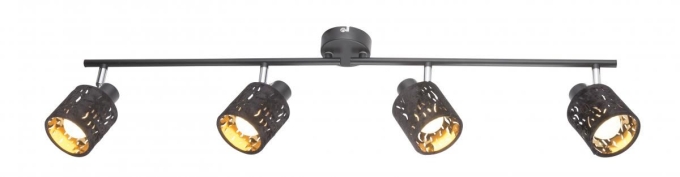 Globo TROY Strahler Metall schwarz, Chrom, Samt schwarz, beweglich, Schirm mit Dekorstanzungen, innen gold, LxH:840x160, exkl. 4xE14 8W 230V