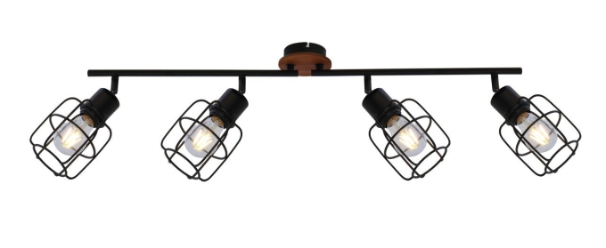 Strahler Metall schwarz, Holz braun, Metall schwarz, beweglich, LxBxH: 800x110x240mm, exkl. 4x E27 40W 230V