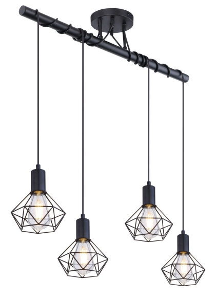 Die Hängeleuchte Xara I überzeugt mit ihrem eleganten Design. Die vier schwarzen diamantförmigen Metallkäfige, sollten alle Blicke auf sich ziehen. Die Lampenschirme dieser Leuchte sind mit E14 Fassung ausgestattet, welche es Ihnen ermöglichen das für Sie passende Leuchtmittel (max. 4x60W) selbst auszuwählen. Somit können Sie die Lichtfarbe und Lichtstärke selbstständig bestimmen. Aufgrund ihrer Stromersparnis und Langlebigkeit empfehlen wir LED-Leuchtmittel zu verwenden. Mit weiteren Modellen aus dieser Serie können Sie das Bild in Ihren vier Wänden komplettieren.