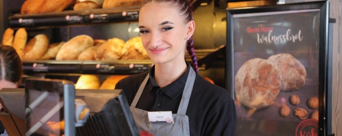 Mit Begeisterung verkaufst du unsere ofenfrischen Backwaren.