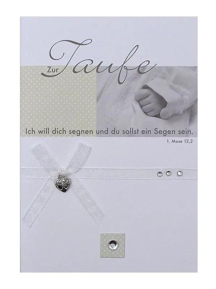 Herzliche Glückwünsche zur Taufe  Die Klappkarte für die Glückwünsche zur Taufe mit von Papas Hand gehaltener Babyhand sieht edel aus und bietet genug Platz für ein paar nette, persönliche Zeilen. Text außen:  "Zur Taufe - Ich will dich segnen und du sollst Segen sein.", der Text innen lautet: "Ganz herzliche Glück- und Segenswünsche." Über Grußkarten anlässlich der Taufe eines Babys freuen sich alle Eltern. Die Freude über das Neugeborene könnte kaum deutlicher ausgedrückt werden, als mit einem Geschenk und einer passenden Grußkarte. Besonders auf Klappkarten, wie sie Sie in vielfältiger Art und Weise hier im 1a-Geschenkeshop finden, ist reichlich Platz für persönliche Glückwünsche.   Karten für Glückwünsche zur Taufe aus dem 1a-Geschenkeshop Mit Grußkarten können die Glückwünsche zur Taufe dauerhaft aufbewahrt werden.  Es sind "handfeste" Gratulationen, die sich Eltern und Kind später gern wieder her nehmen und sich gerne an diese besondere Zeit direkt nach der Geburt und an das Fest der Taufe erinnern. Im Vergleich zu Grußkarten, die elektronisch versendet werden, kann man "echte" Grußkarten mit Glückwünschen zur Taufe zu Hause aufstellen und hat sie so immer vor Augen. Wir bieten Ihnen Grußkarten zur Taufe für jeden Geschmack, sowie für Jungen und Mädchen. Ein ansprechendes Design spielt bei den persönlichen Grüßen immer eine Rolle. Es ist wie bei einer Hochzeitskarte ganz wichtig, dass die "Aufmachung" zum festlichen Anlass - zur Taufe - passt. Karten mit Glückwünschen zur Taufe werden häufig in einer größeren Stückzahl benötigt. Wer hat schon Zeit und Geschick genug, diese selbst zu basteln? Kaufen Sie diese Grußkarten, sowie Einladungskarten und Danksagungskarten deshalb bei uns im 1a-Geschenkeshop und legen Sie die eine oder andere  Geburtstagskarte  mit in den Warenkorb. Ein passendes Geschenk und die Grußkarten zusammen sparen Porto und Aufwand. Da Sie Karten mit Ihren ganz persönlichen Glückwünschen zur Geburt oder zur Taufe immer selbst beschriften, wirken Sie beim Empfänger letztendlich doch persönlich und individuell. Bunt und fröhlich dürfen die Karten mit Ihren Grüßen wirken. Edel und seriös sehen zum Beispiel die Hochzeitskarten aus. Für offizielle und private Gelegenheiten finden Sie garantiert die richtige Grußkarte.  Dankeskarten  sind zum Beispiel auch eine sehr schöne Möglichkeit, mit jemandem eine Beziehung zu pflegen. Egal, ob diese Grußkarte als Dank für die Geschenke nach einem Fest versendet wird, oder ob die Dankeskarte jemanden zwischendurch erreicht, dem man einfach einmal von ganzem Herzen "Danke" sagen möchte. So haben Geburtstagskarten, Glückwunschkarten und Dankeskarten je Ihre ganz eigene Bedeutung. Unsere Grußkarten sind im Gegensatz zu den Grußkarten, die in so manchem Ladengeschäft erhältlich sind, weder altmodisch noch kitschig und da es sich um Klappkarten handelt, haben Sie genügend Platz für persönliche Zeilen. Auch ein Foto oder ein Geldschein findet in den Grußskarten Platz. Es gehört ein weißer Briefumschlag zu jeder Karte dazu.