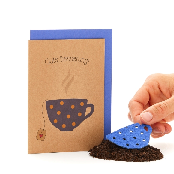 Grußkarte "Gute Besserung" mit Teetasse | Ideal für Genesungswünsche | Karte "Gute Besserung" I Genesungskarte I Die Stadtgärtner